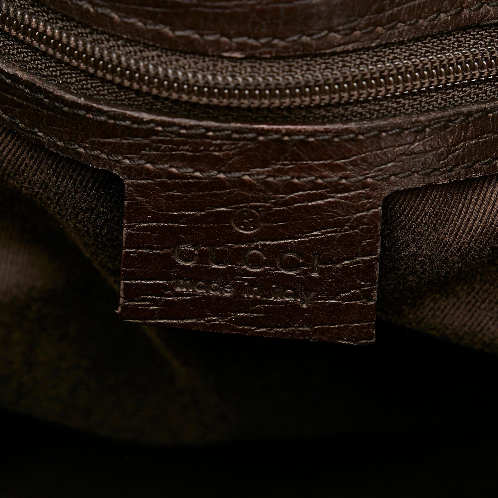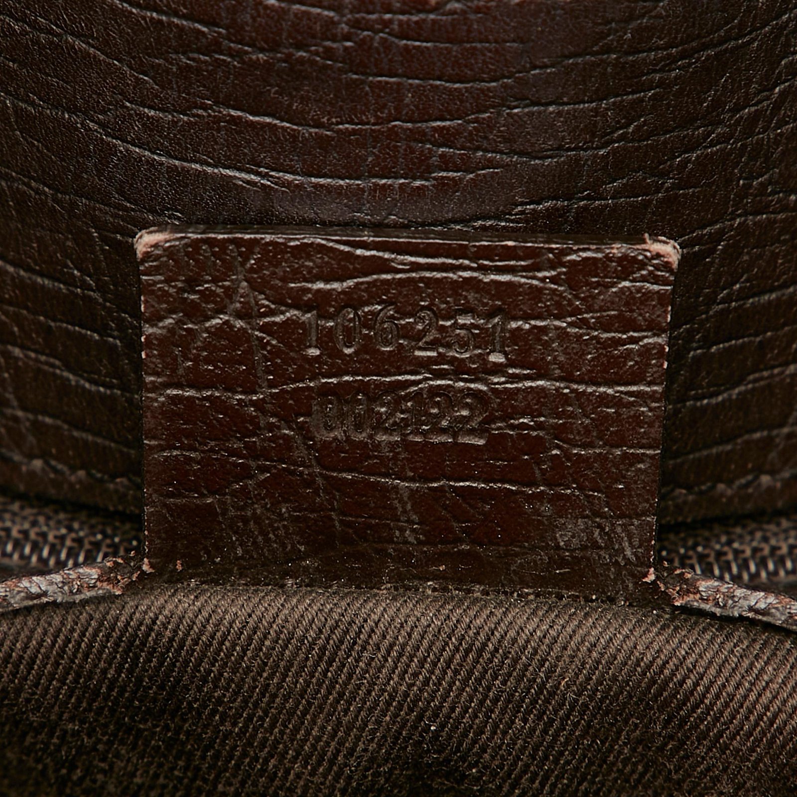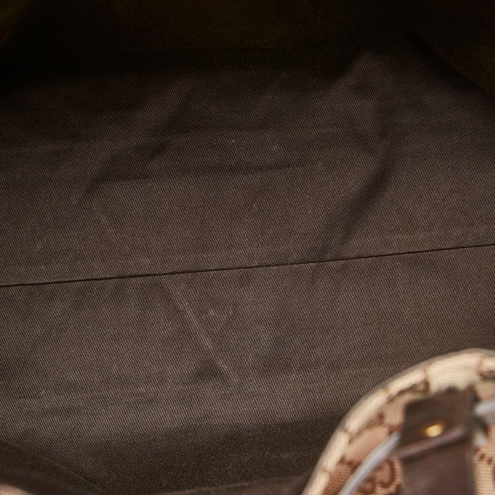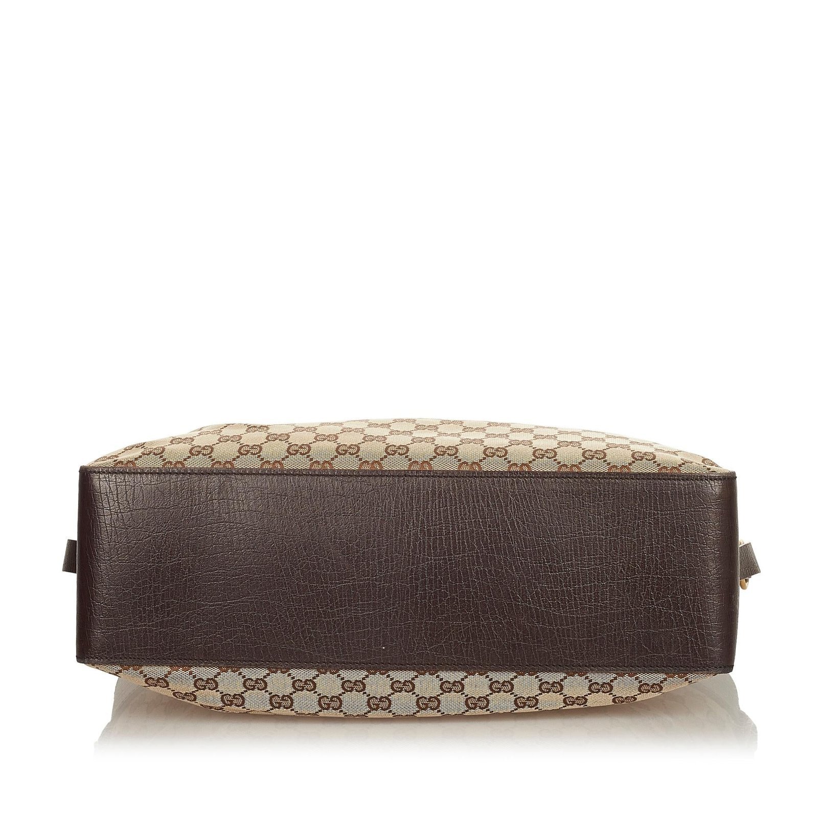 - Signature GG canvas exterior in brown, beige, and dark brown tones with leather and calfskin accents