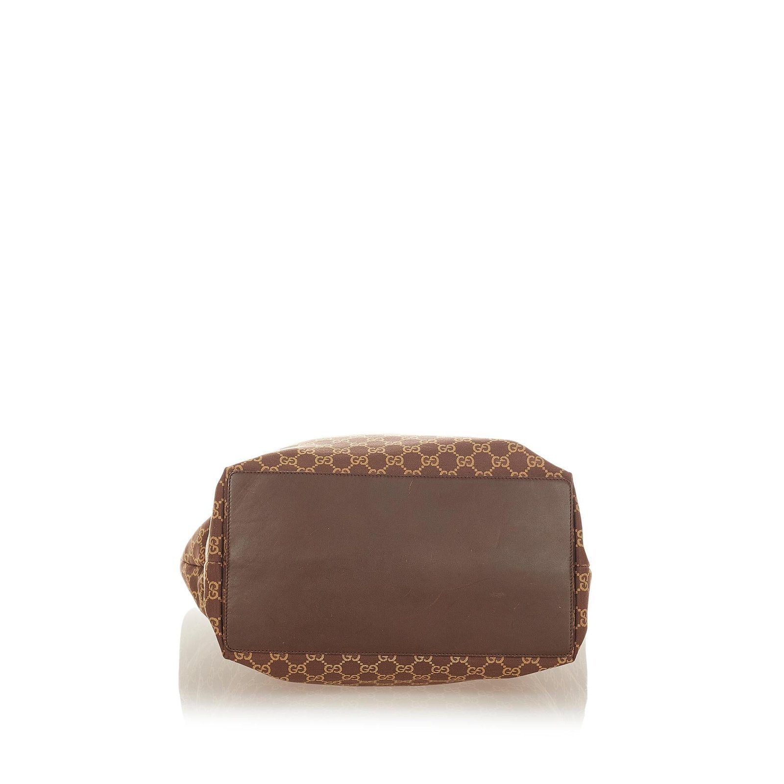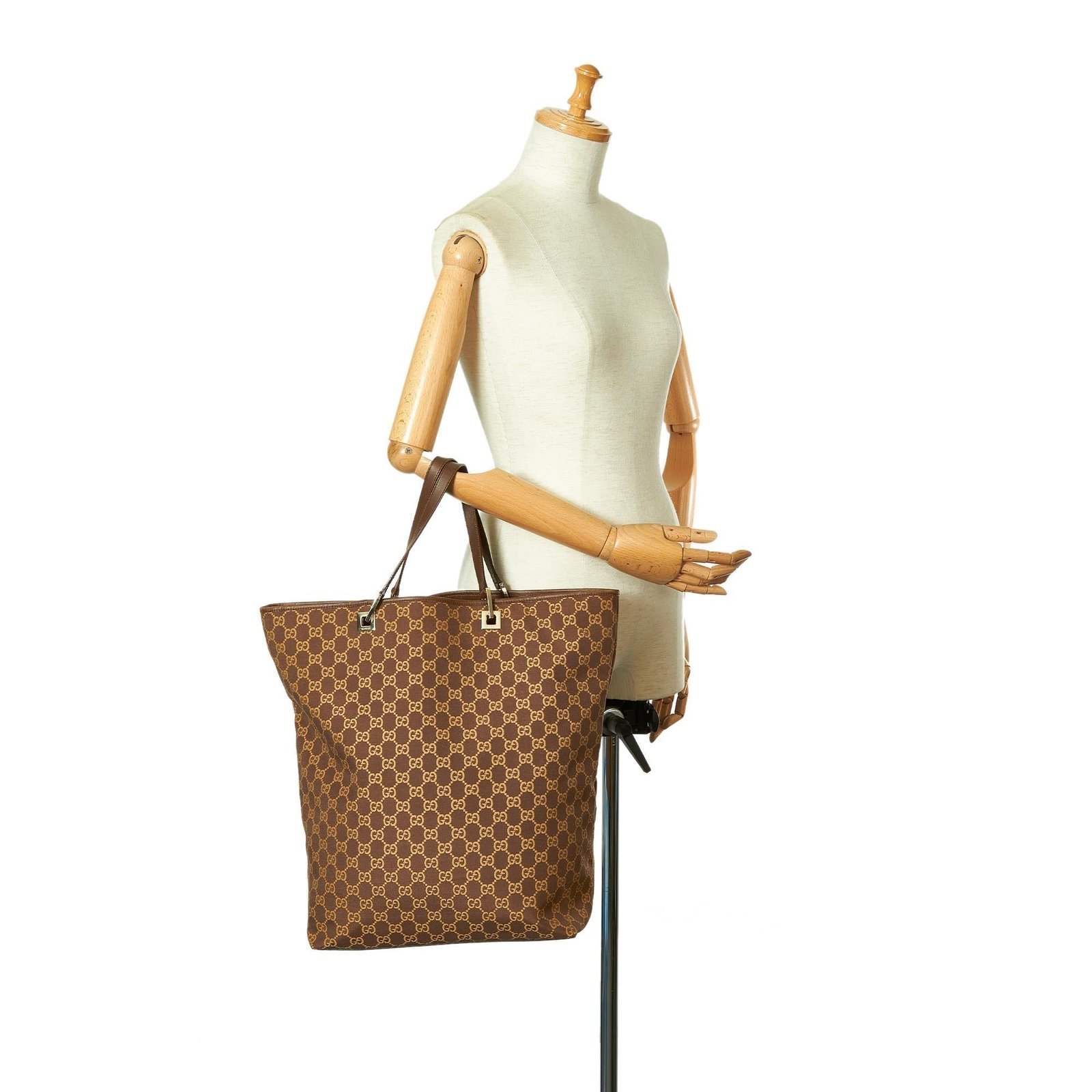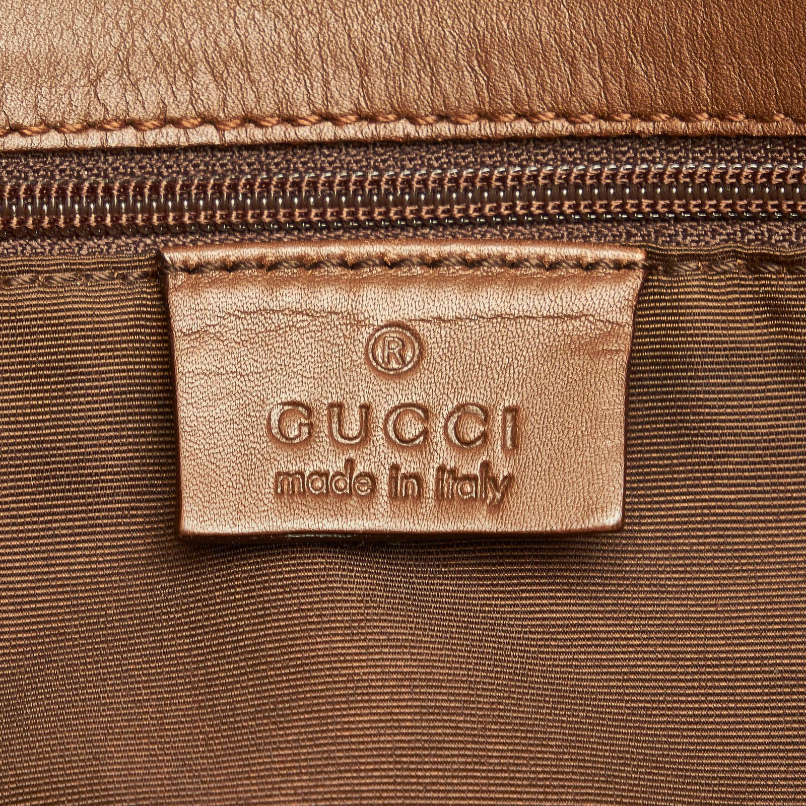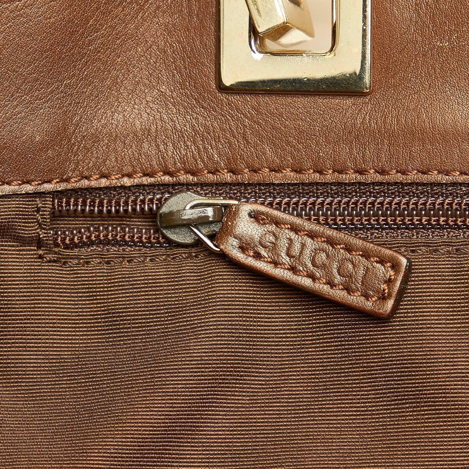 - Signature GG canvas exterior in rich brown tones with leather trim