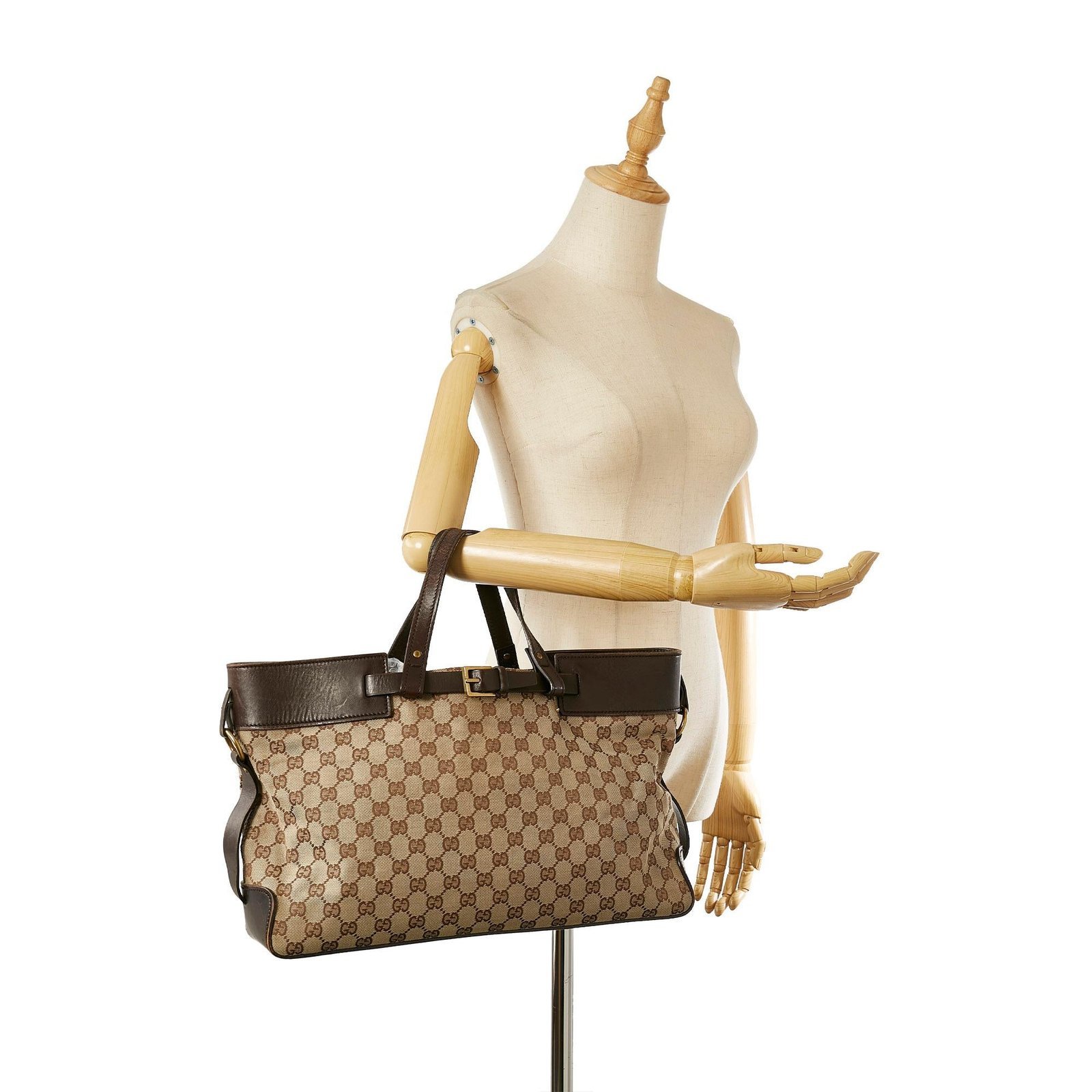 - Signature GG canvas exterior in brown, beige, and dark brown tones with leather and calfskin accents