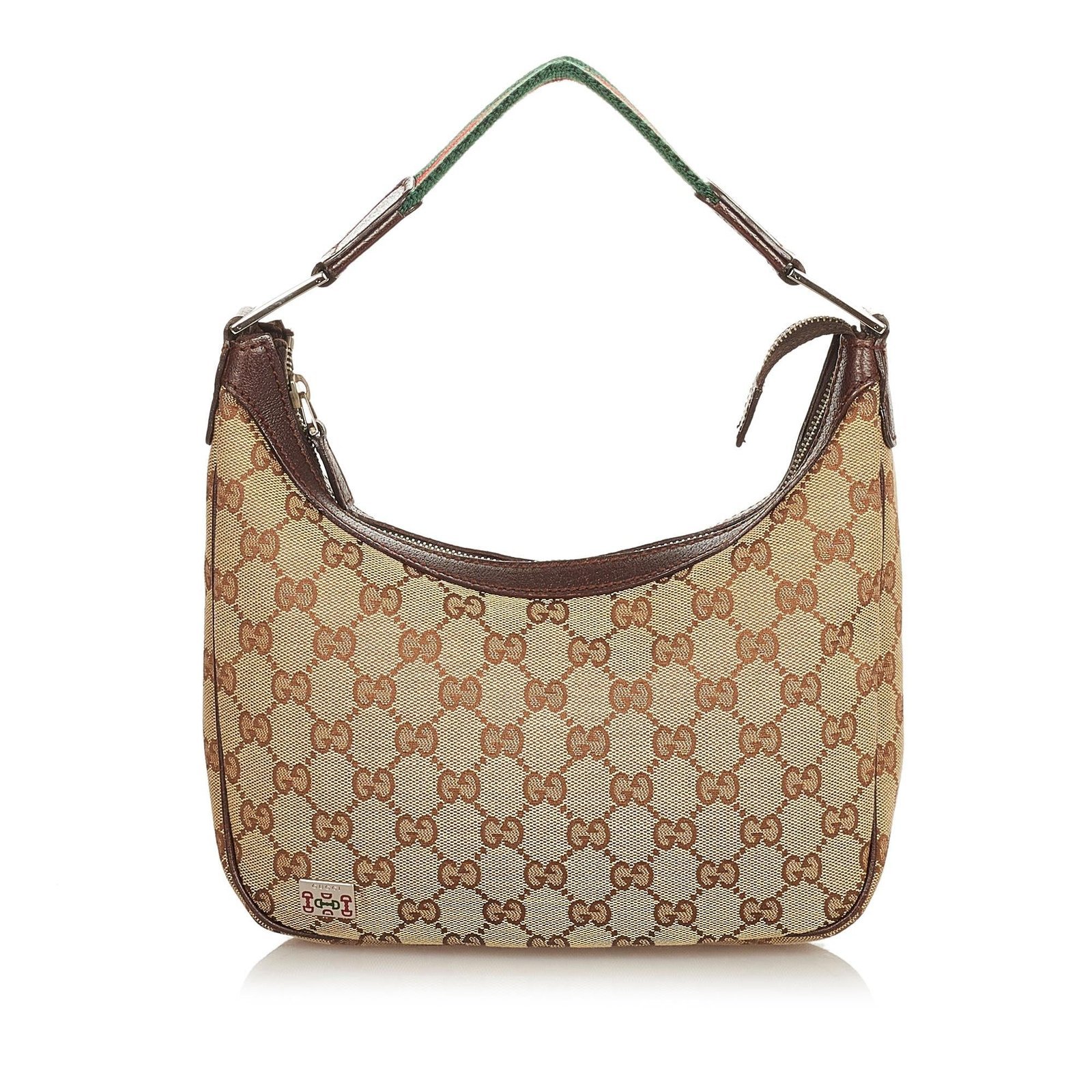 - Signature GG canvas exterior in brown and beige tones with leather and calfskin accents