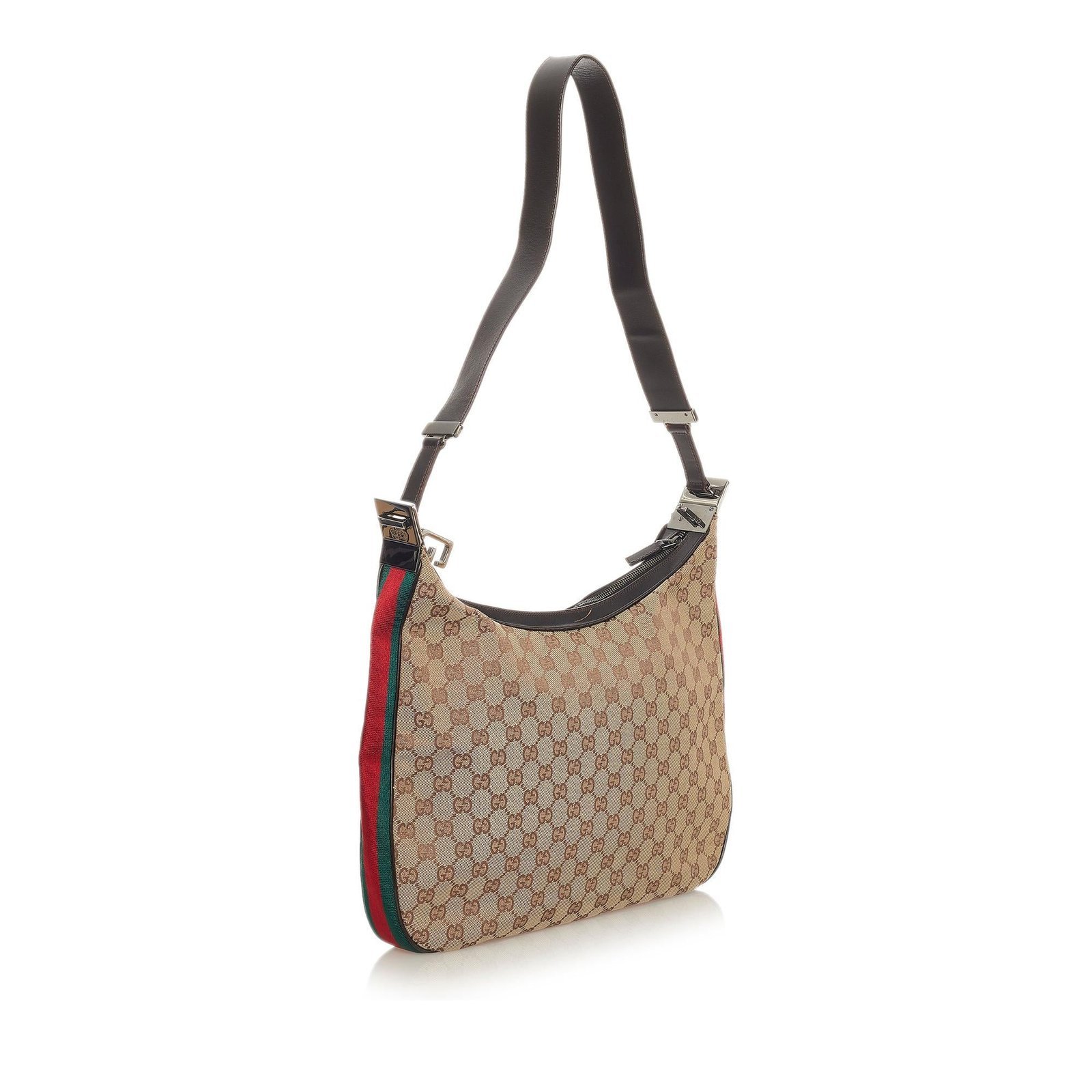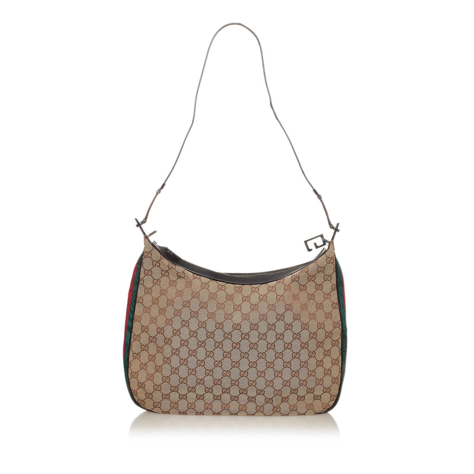 The Gucci GG Canvas Web Shoulder Bag is a chic and versatile accessory that embodies Gucci’s iconic design and Italian craftsmanship. Crafted from signature GG canvas in brown and beige tones with leather and calfskin accents and subtle multicolor detailing, this shoulder bag features a flat leather strap, a top zip closure, and an interior zip pocket. Its sleek silhouette combines practicality with refined style, perfect for daily use or casual outings.