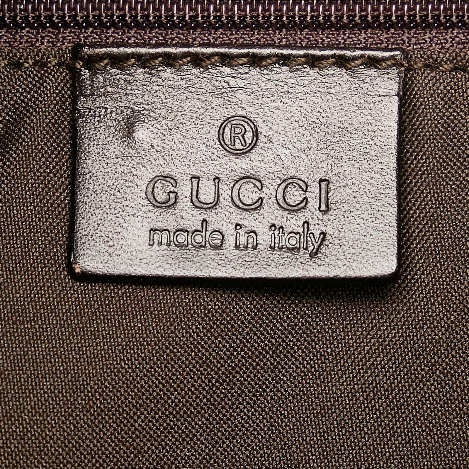 - Signature GG canvas exterior in brown and beige tones with leather, calfskin, and multicolor accents