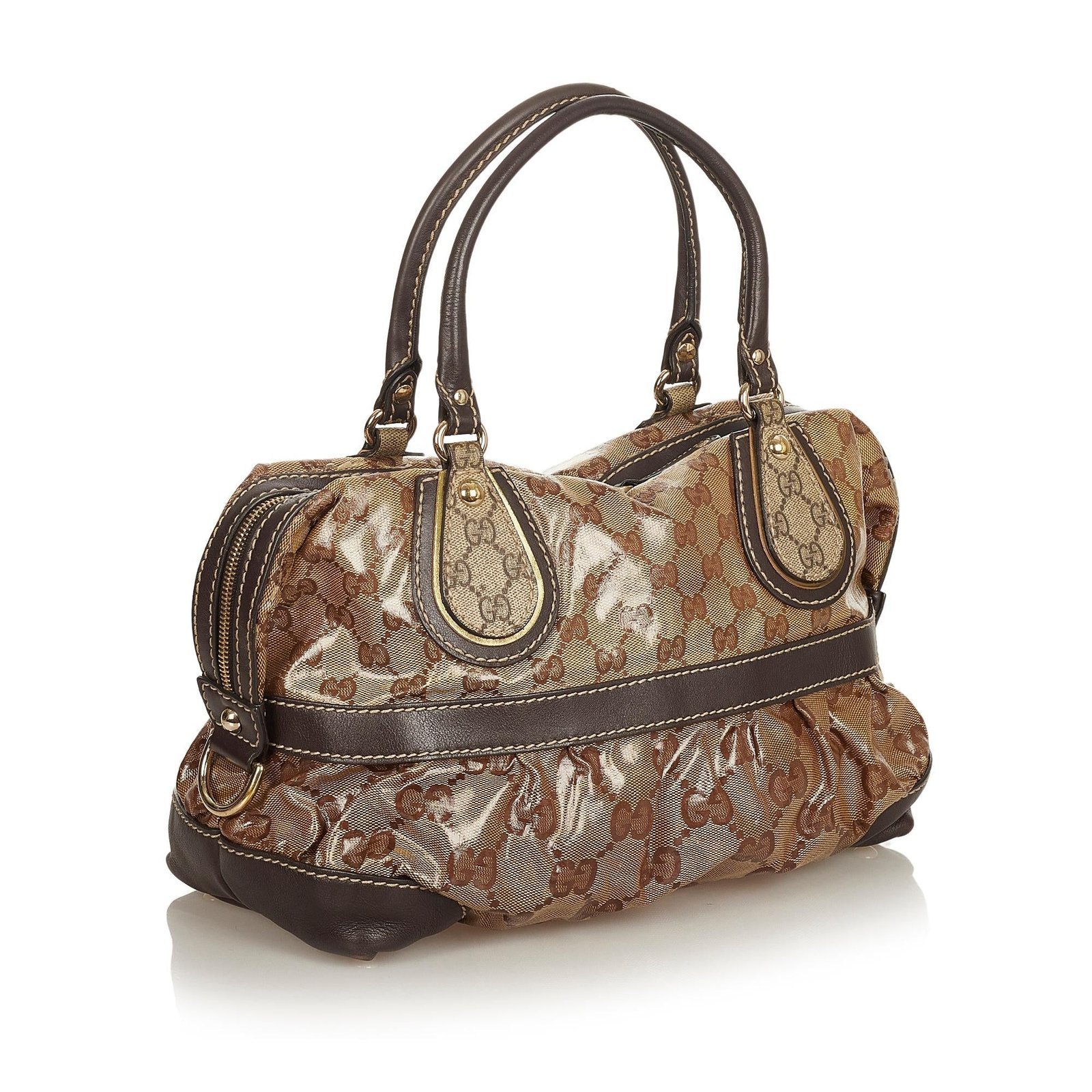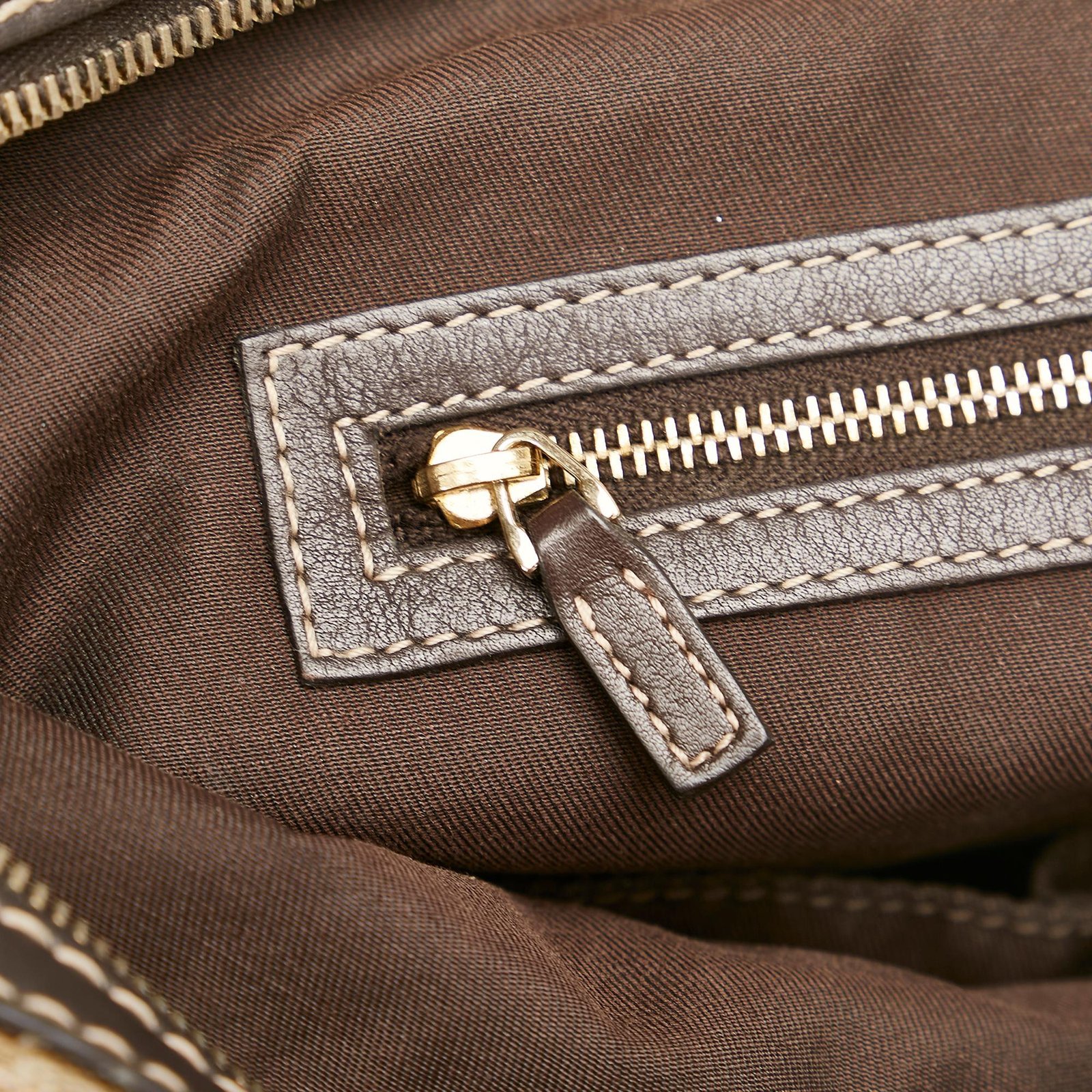 Exuding refined sophistication, this Gucci handbag combines timeless craftsmanship with contemporary style. Crafted from coated canvas in rich Black and Brown tones, it is accented with polished gold hardware for a luxurious finish. The structured silhouette and thoughtfully designed interior offer both elegance and practicality, making it a versatile companion for daily use or special occasions. Made in Italy, this piece reflects the House’s commitment to quality and iconic design.