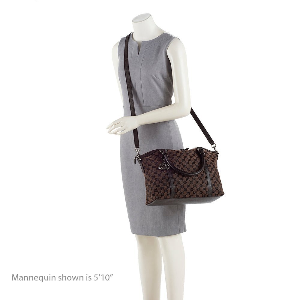 The Gucci GG Denim Dome Satchel exemplifies Gucci’s signature craftsmanship with a structured and versatile design. Crafted from coated canvas with leather trim, the Gucci GG Denim Dome Satchel features rolled leather handles, a detachable flat leather strap, a top zip closure, and interior zip and slip pockets for organized storage. Designed in sophisticated Brown and Beige tones, it balances polished style with everyday practicality. Made in Italy, this satchel reflects the House’s commitment to refined luxury and timeless design.