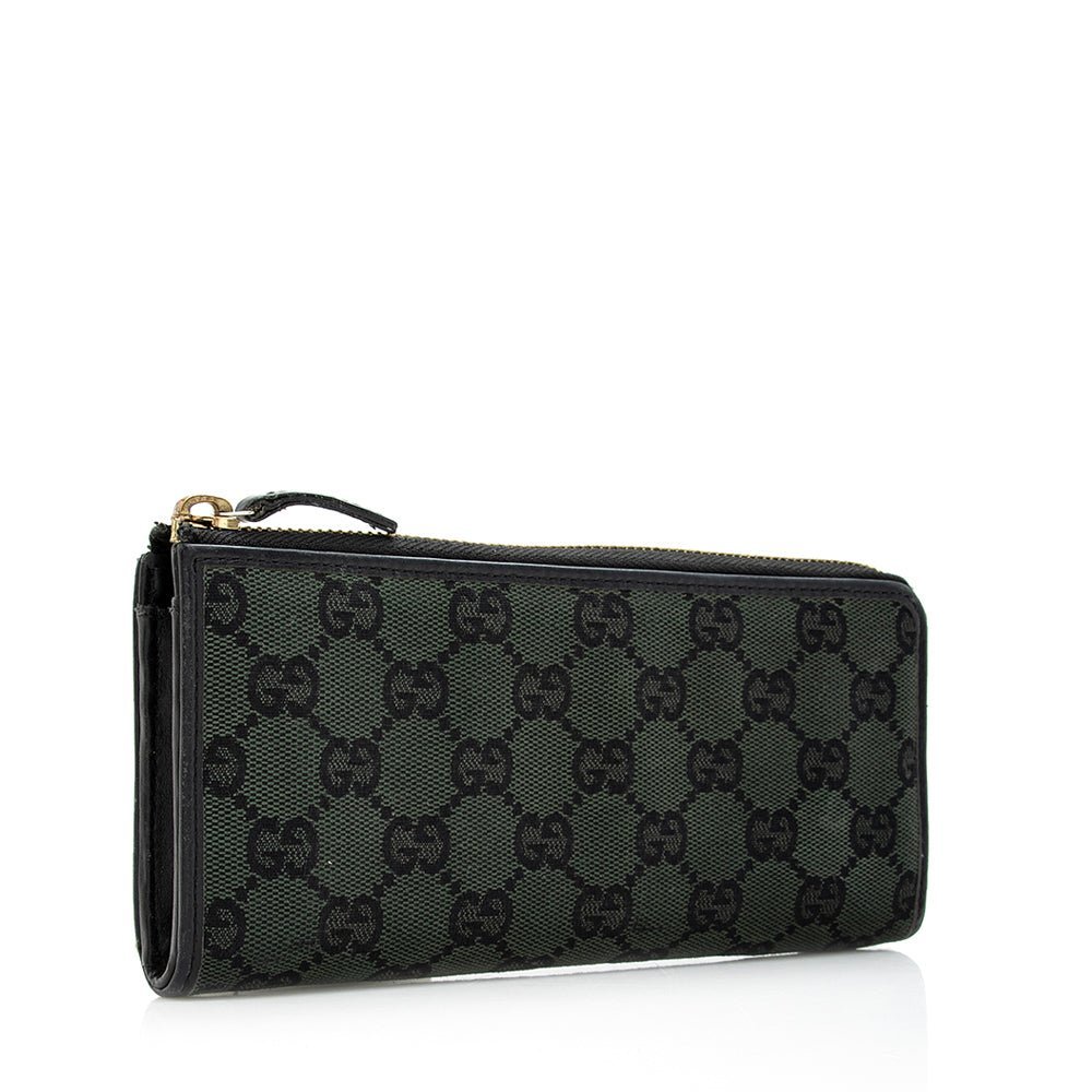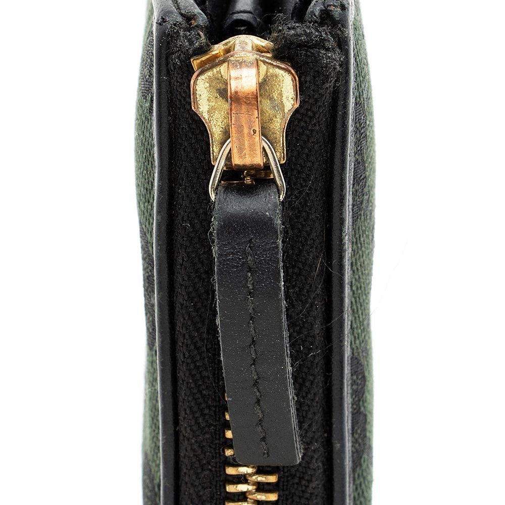 Slim and compact small leather goods from the latest collections highlight new colourful shades sporting the GG logo with a bicolour design. This zip card case with five slots appears in a black GG Supreme canvas, complete with a smooth dark green leather trim.