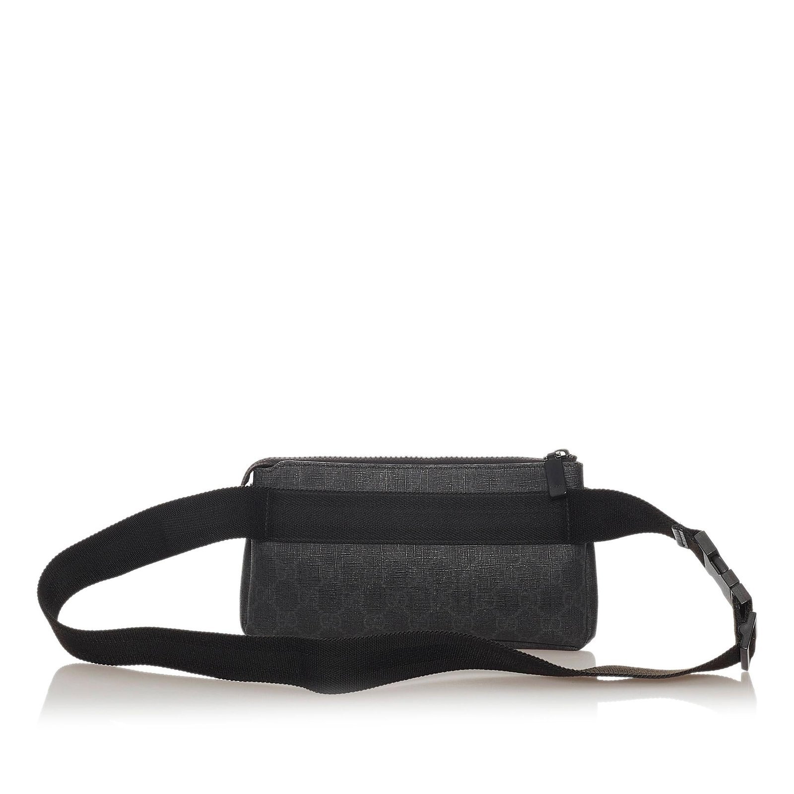 The Gucci GG Supreme Belt Bag combines Gucci’s signature craftsmanship with a sleek, hands-free design. Crafted from coated canvas with leather and calf accents, the Gucci GG Supreme Belt Bag features a flat waist strap, exterior front flap pocket, and top zip closure for secure and organized storage. Designed in classic Black, it offers a polished and versatile accessory for daily use or travel. Made in Italy, this belt bag reflects the House’s commitment to luxury and functional design.