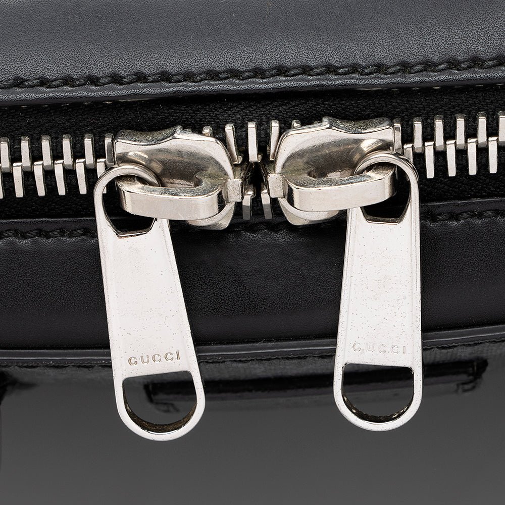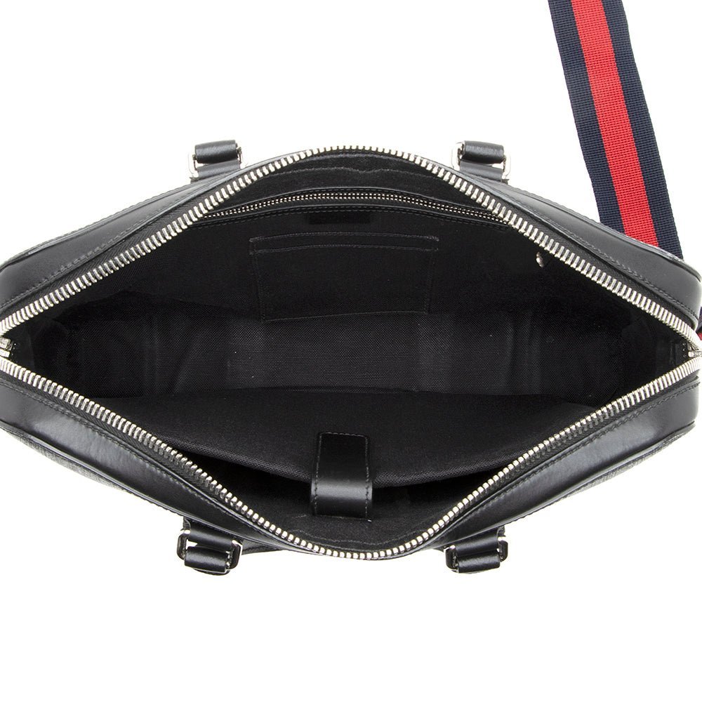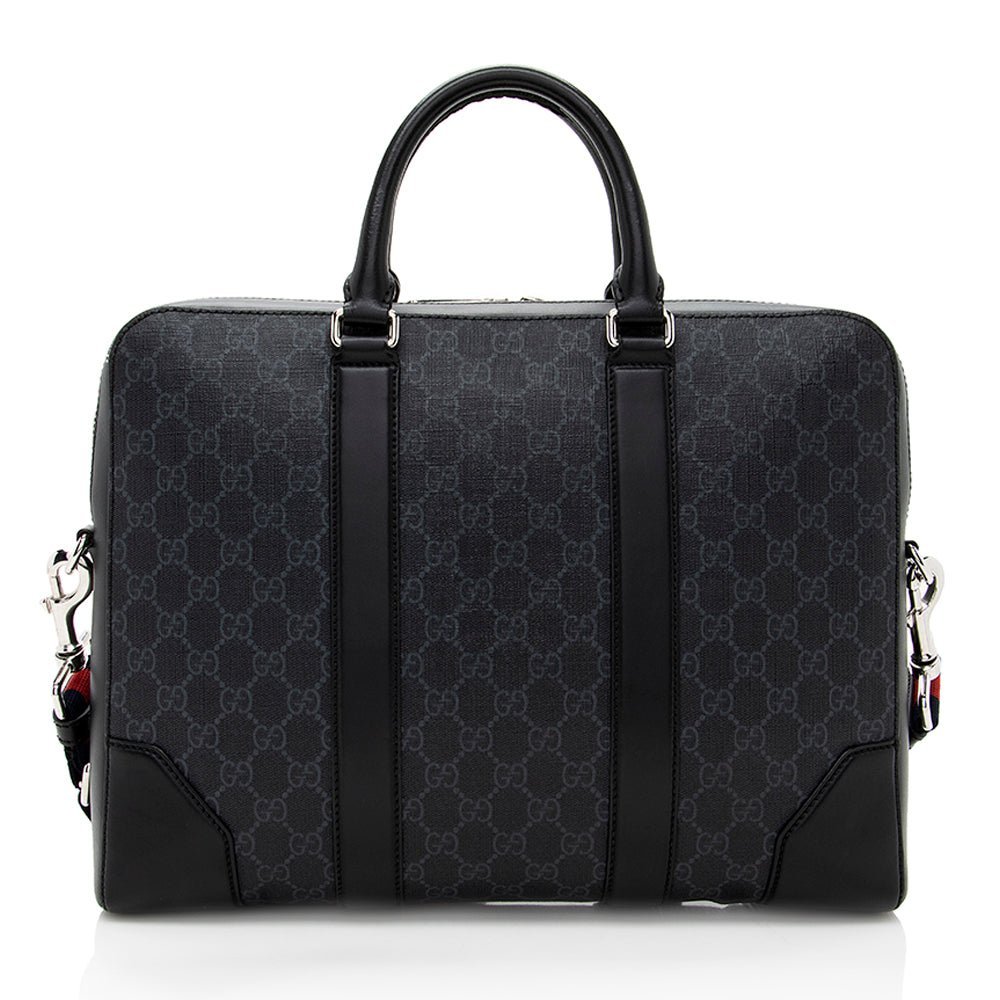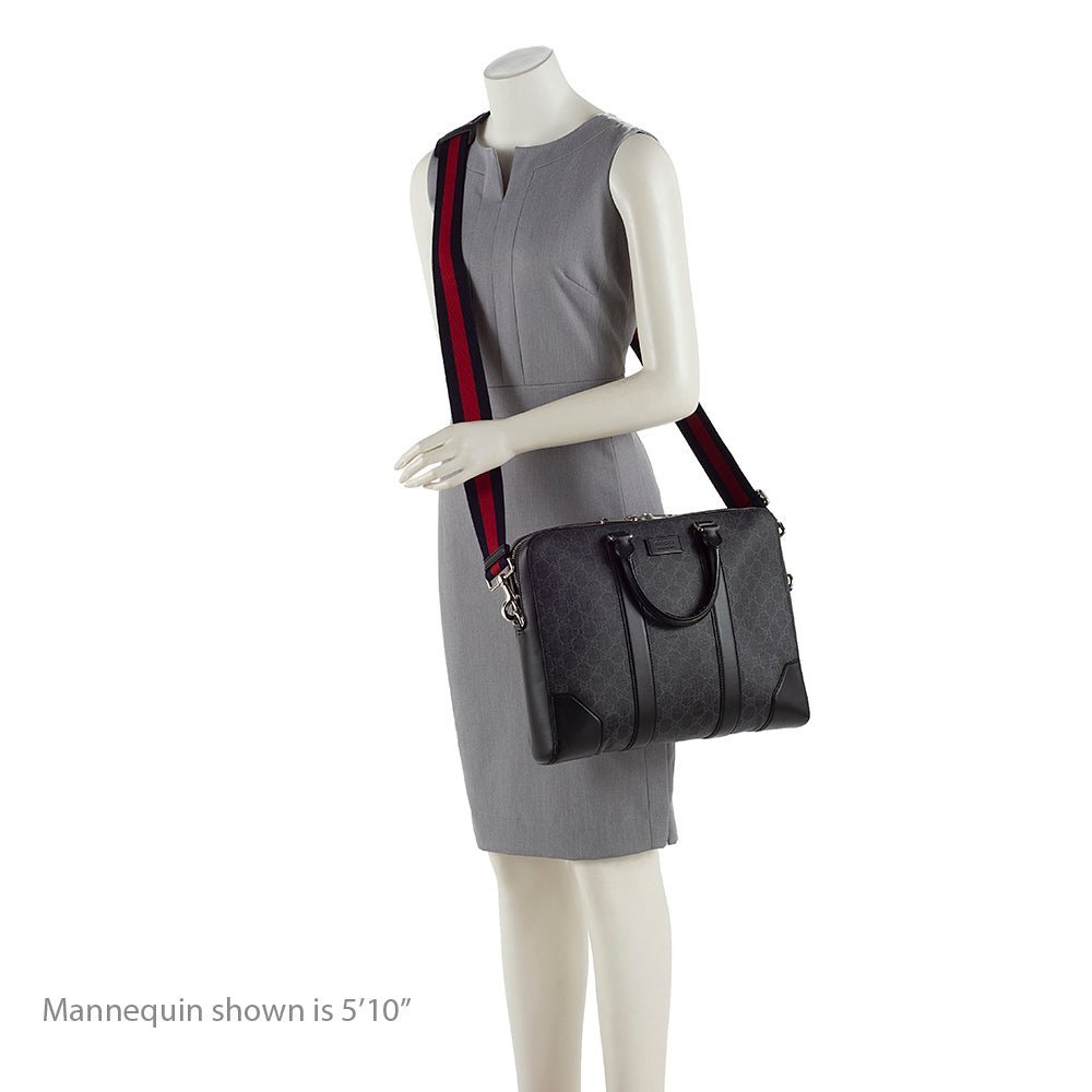 The signature GG Supreme canvas remains an evergreen of the House thanks to its soft and malleable qualities. Crafted from a coated microfiber fabric, here it appears in an all black variation to define this briefcase. A tonal leather trim completes the style, while a pop of colour appears in the form of the archival Web stripe.