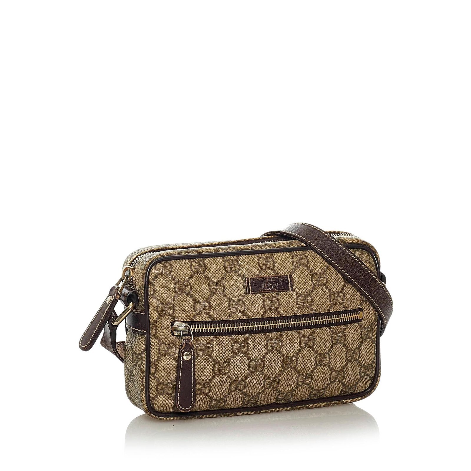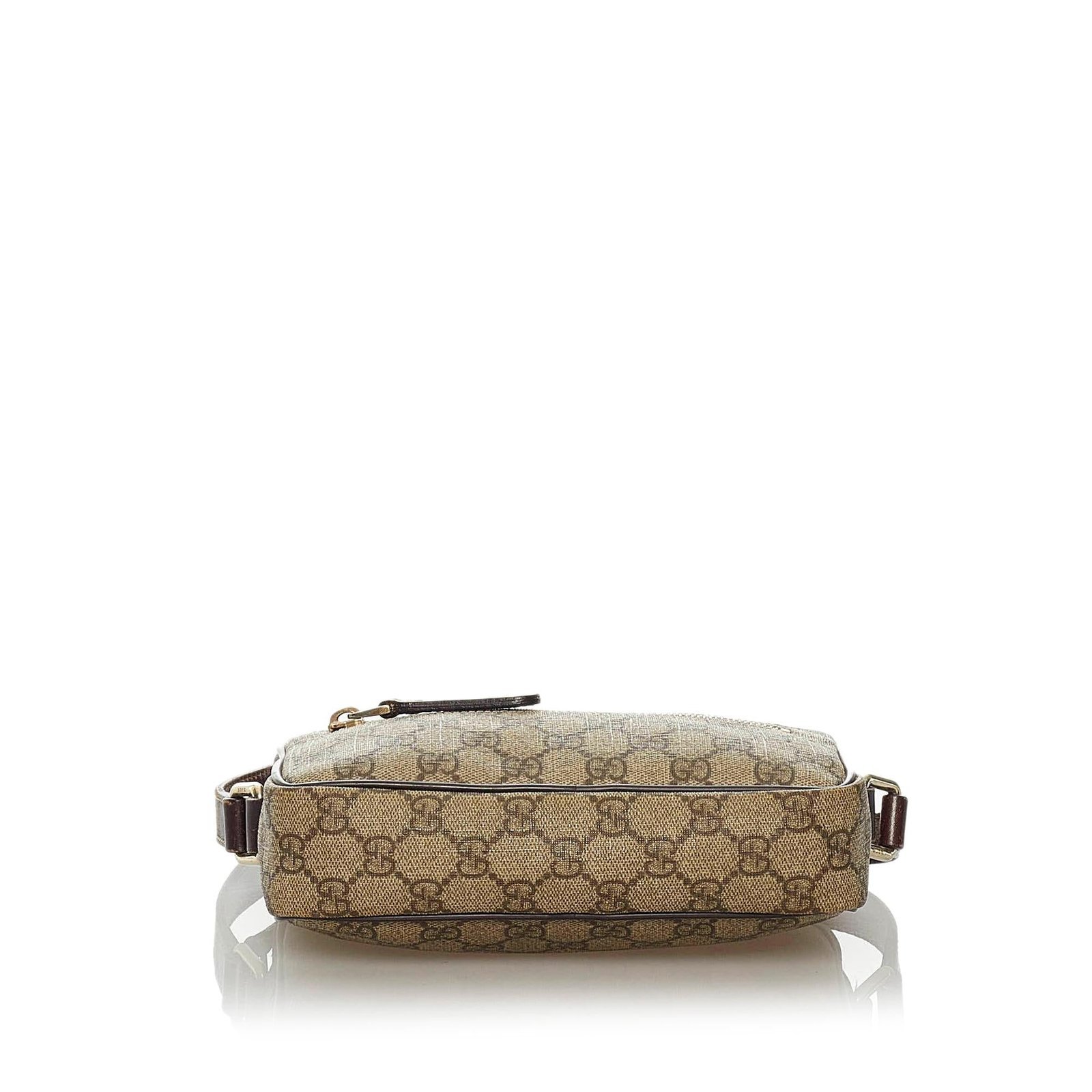 The Gucci GG Supreme Crossbody Bag is a compact and stylish accessory, crafted from coated canvas with leather trim. It features an adjustable flat shoulder strap, a top zip closure, an exterior zip pocket, and an interior slip pocket, combining functionality with luxury. Designed in classic Gucci shades of Brown, Beige, and Dark Brown, this crossbody is perfect for carrying daily essentials with elegance. Made in Italy, it reflects Gucci’s signature craftsmanship and sophisticated design.