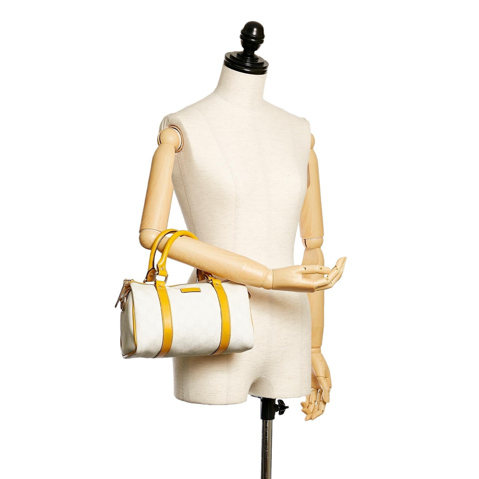 The Gucci GG Supreme Joy Boston Bag is a chic and versatile accessory, crafted from iconic GG Supreme coated canvas with leather trim. Its rolled leather handles and top zip closure ensure easy and secure carry, while the interior slip pocket keeps essentials organized.