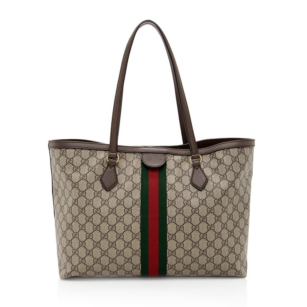 The Ophidia collection evokes the House’s heritage with the signature Web stripe and Double G emblem in light gold-toned finish. The styles are crafted from soft GG Monogram coated fabric, featuring green cotton lining inside.