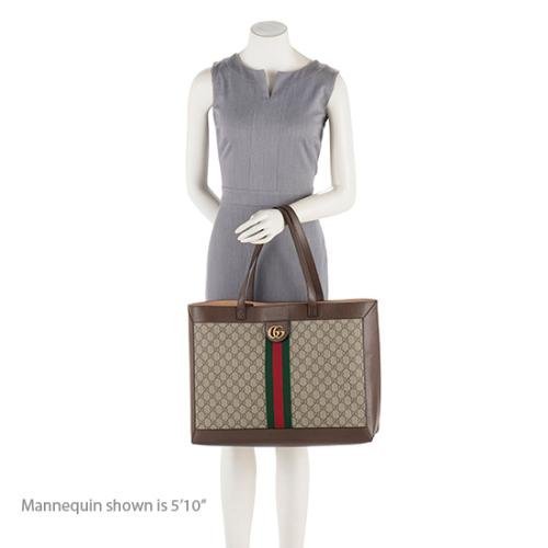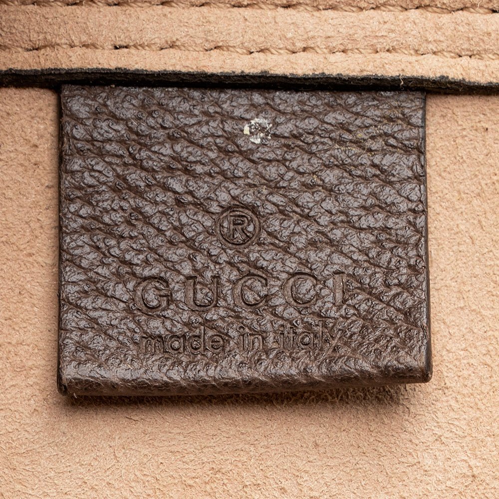 The Ophidia collection evokes the House’s heritage with the signature Web stripe and Double G emblem in light gold-toned finish. The styles are crafted from soft GG Monogram coated fabric, featuring green cotton lining inside.