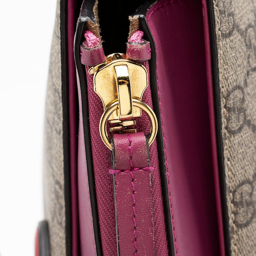 Khaki, pink, and red GG Supreme coated canvas