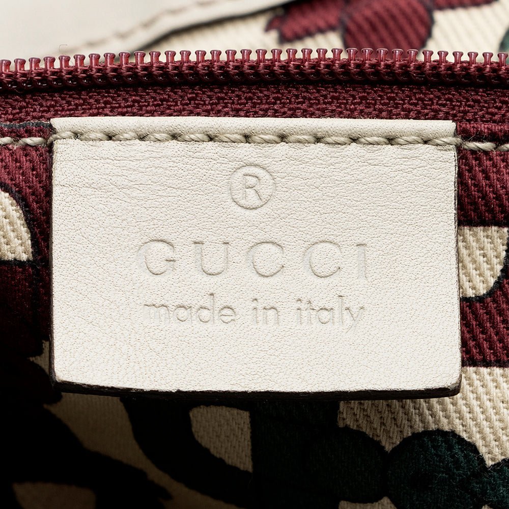 The Gucci Guccissima Leather D-Ring Hobo is a timeless shoulder bag that blends iconic Gucci design with everyday versatility. Crafted in Italy from signature GG canvas with smooth leather trim, this bag is presented in an elegant white colorway that offers a fresh, sophisticated look.