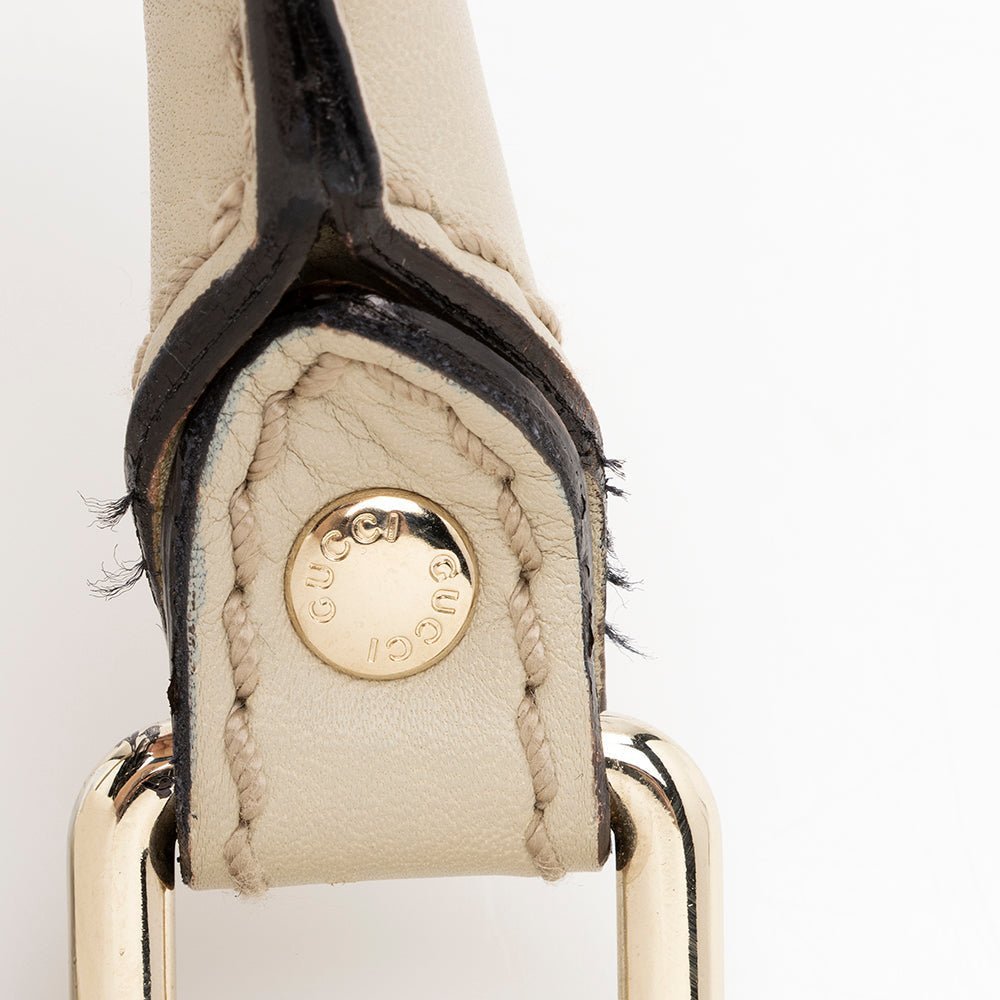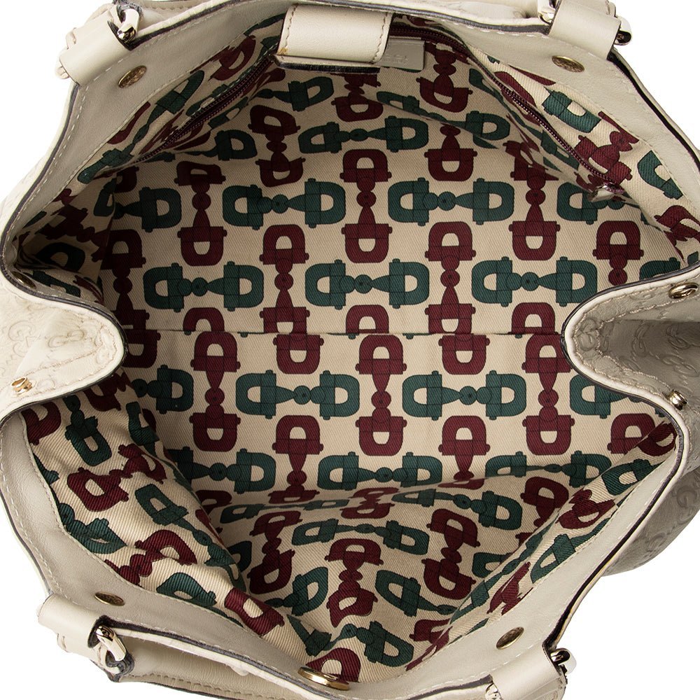 The Gucci Guccissima Leather Sukey Medium Tote is a timeless and sophisticated handbag designed for everyday elegance. Crafted in Italy from luxurious Guccissima embossed leather, this tote is presented in a refined white color that highlights its classic silhouette and iconic detailing.