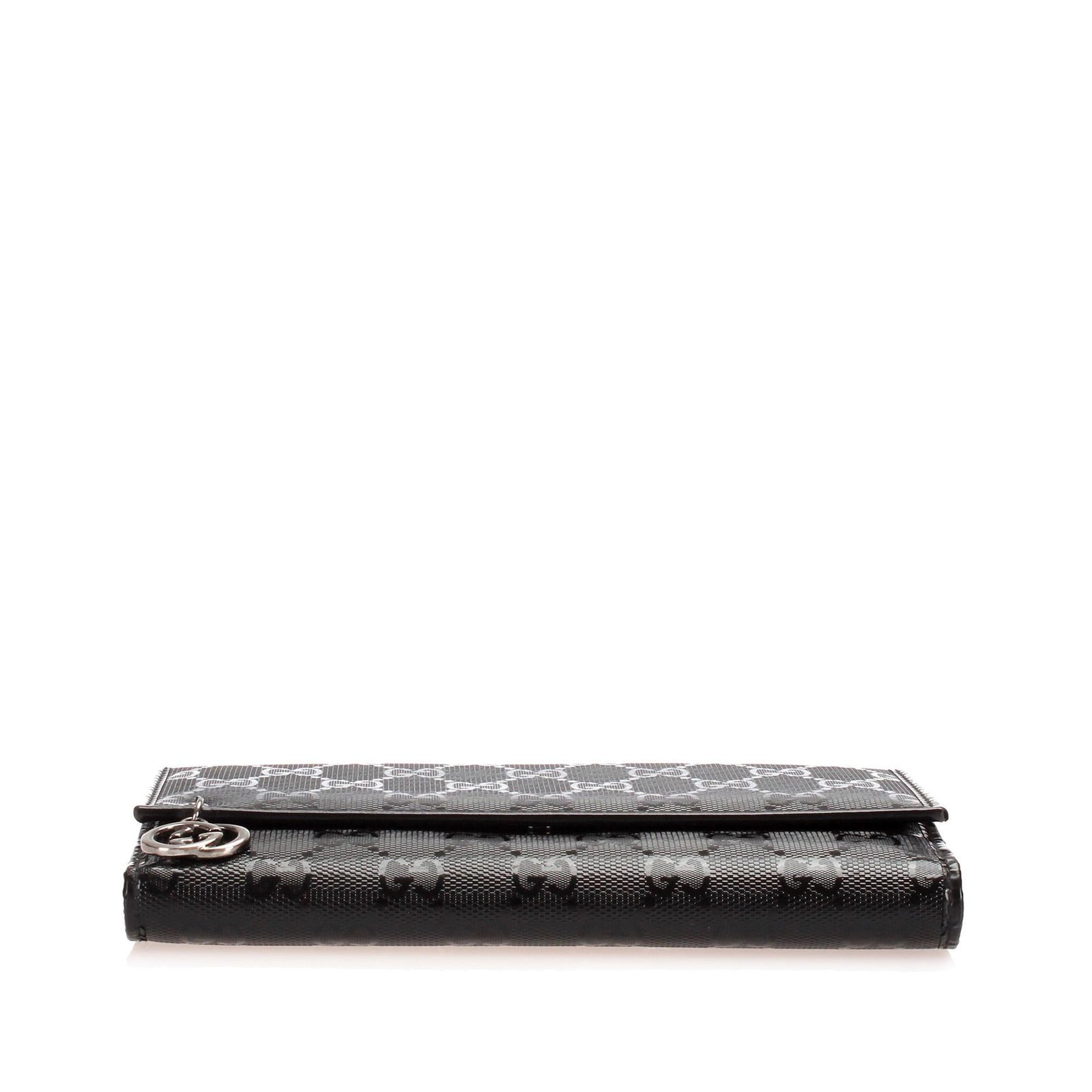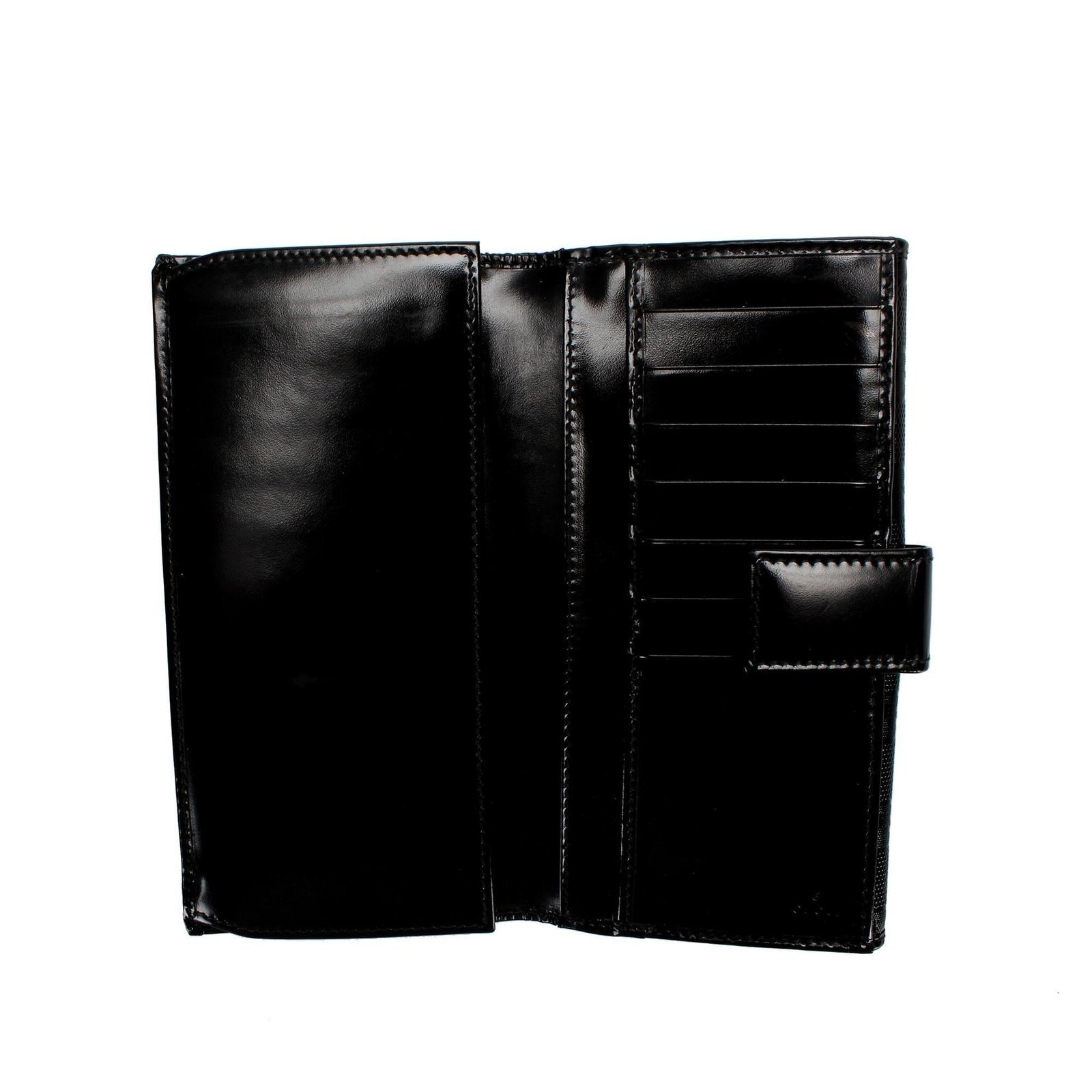 This wallet features a PVC and leather body, a front flap with magnetic closure, and interior zip and slip pockets for organized storage.