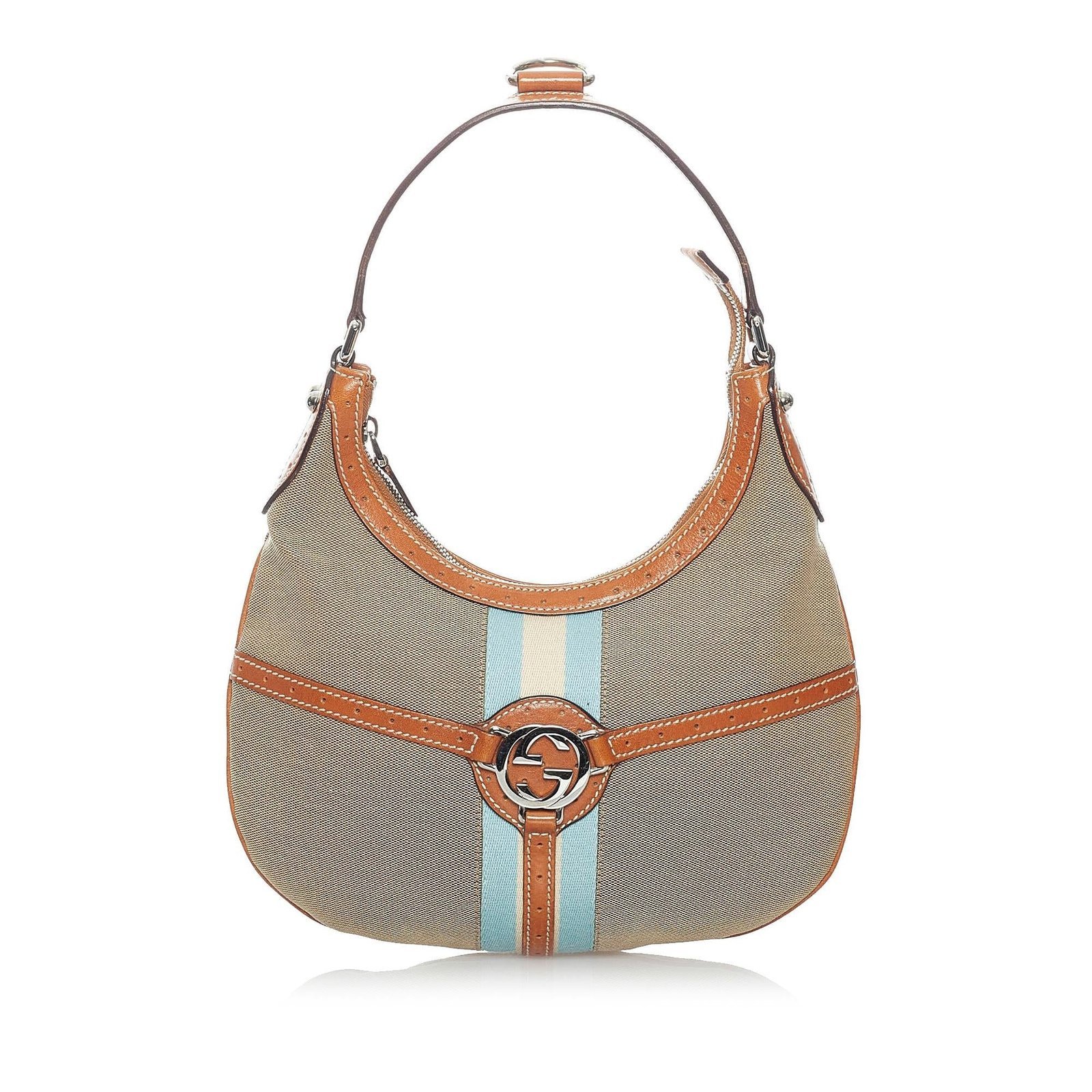 Be the first to review “Gucci Web Reins Canvas Hobo Bag”