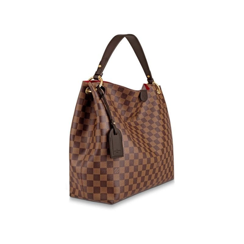 The Graceful MM hobo in elegant Damier Ebene canvas is an extra-roomy yet lightweight bag to carry every day. Natural leather detailing and shiny gold-tone hardware adds a refined, signature touch. The body-friendly design combines with a supple, flat handle for stylish and comfortable over-the-shoulder wear. The magnetic closure and zipped inside pocket keep belongings secure.