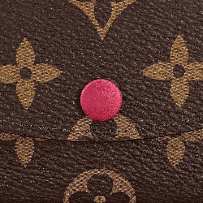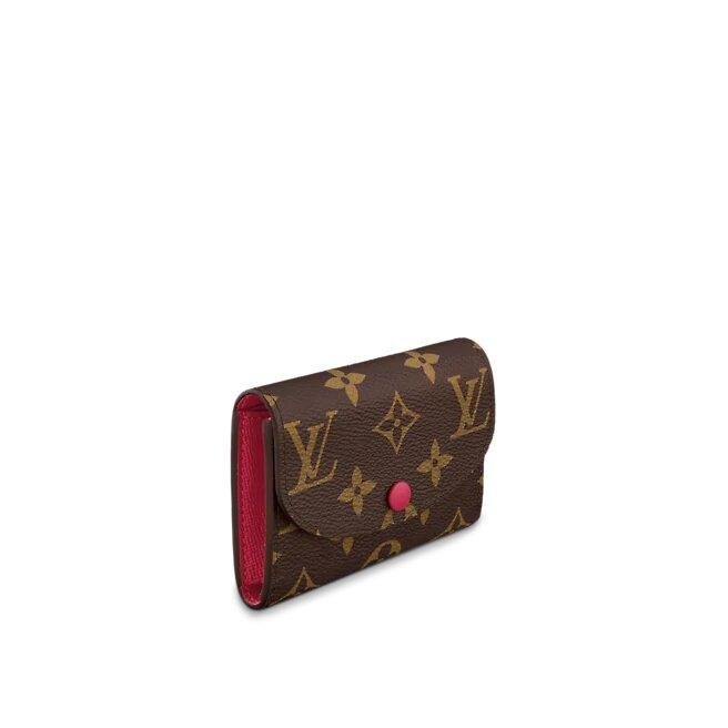 The tiny Rosalie coin handbag in Monogram canvas is given a female feel through its colourful press-stud and grained-leather lining. For this type of compact layout, it is especially spacious, containing a gusseted compartment, two card slots and a zipped coin pocket with a leather pull.