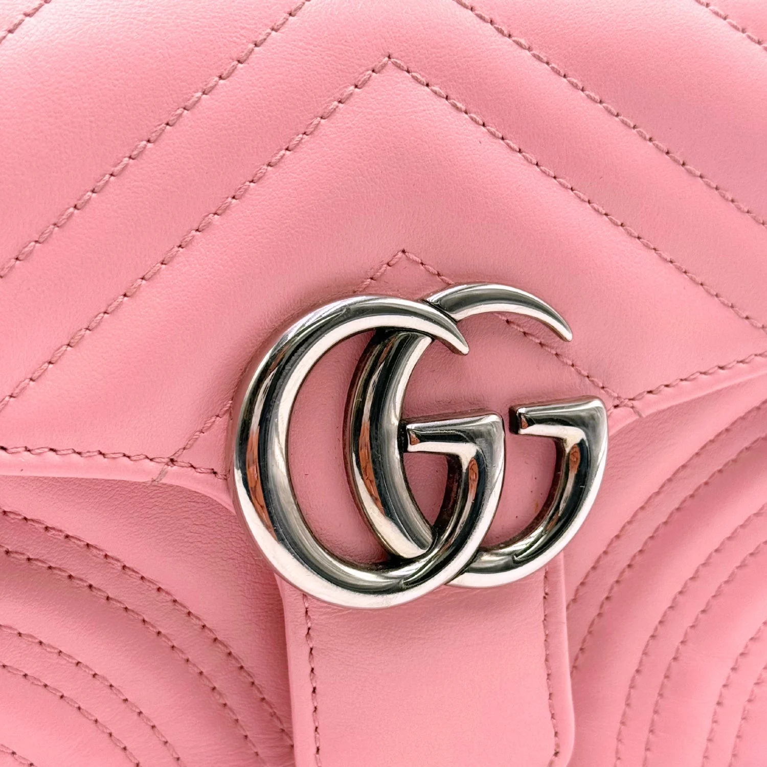 The Gucci Marmont Top Handle Mini Bag is a playful and polished silhouette crafted from soft pink matelassé leather. Featuring signature chevron quilting and the iconic double G logo in silver-tone hardware, this compact bag is finished with a structured top handle and detachable shoulder strap. Its vibrant hue and versatile size make it a charming and statement-making everyday companion.