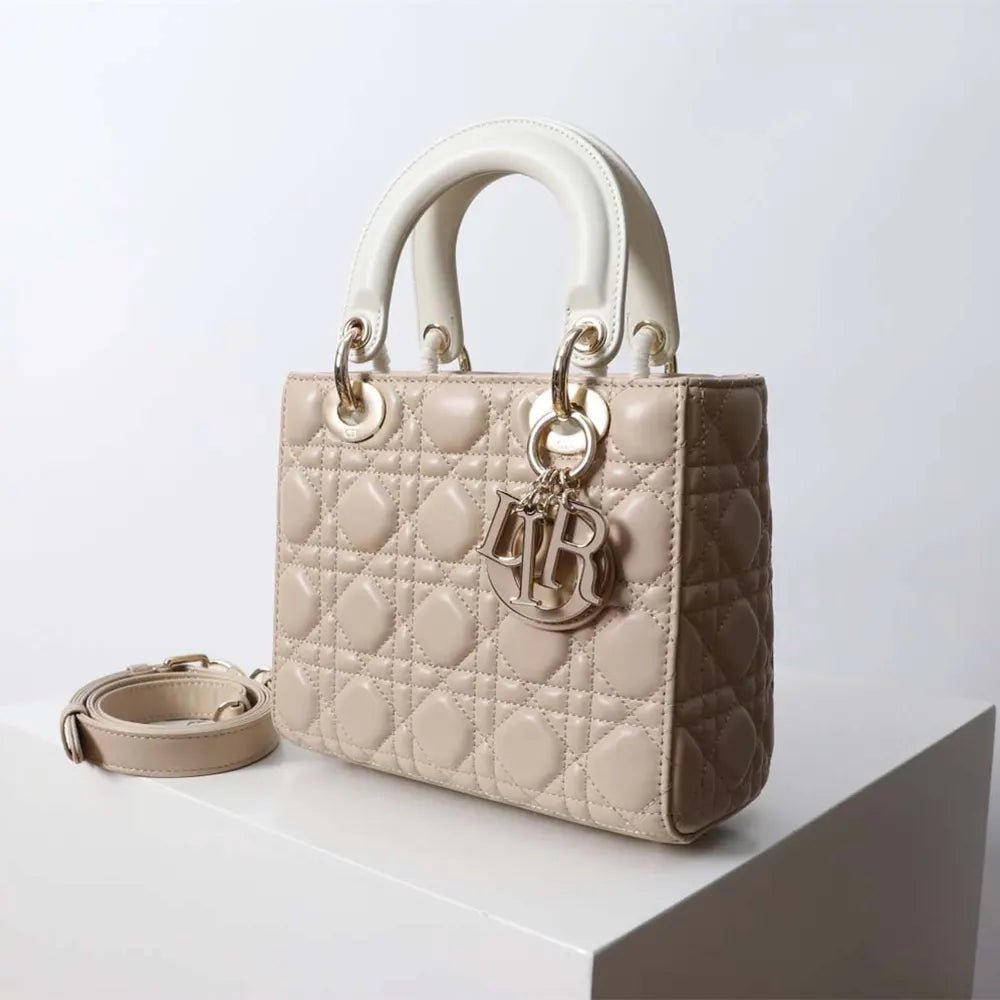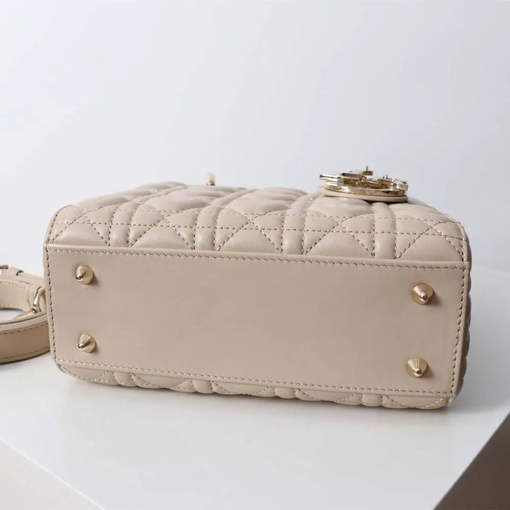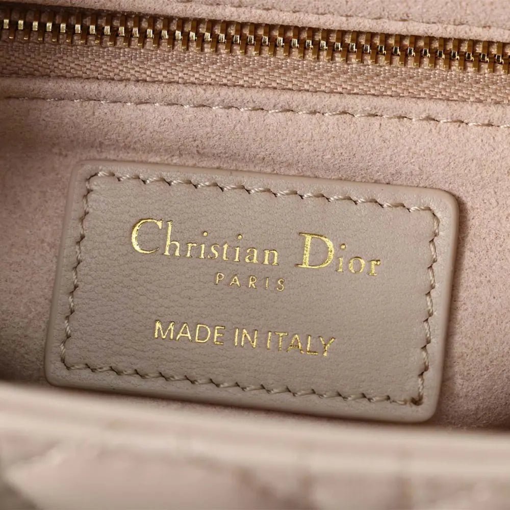 Material: Crafted from powder beige lambskin with signature Cannage stitching.