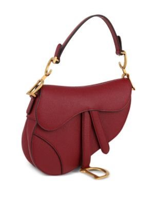The iconic and legendary Saddle bag is characterized by its signature standout shape and equestrian-inspired details. Having debuted in 1999, it takes its cues from the world of horses, featuring a graphic design with an asymmetrical flap reminiscent of a saddle. This modern iteration is crafted in cherry red/plum grained calfskin and embellished with the House’s archival hardware.