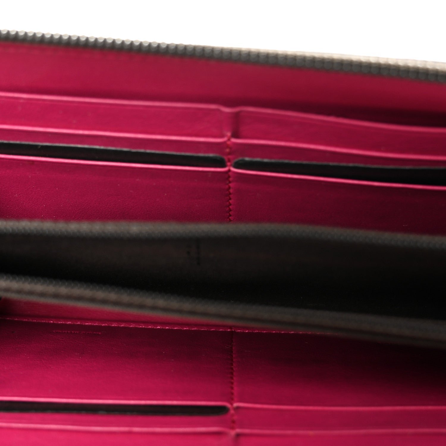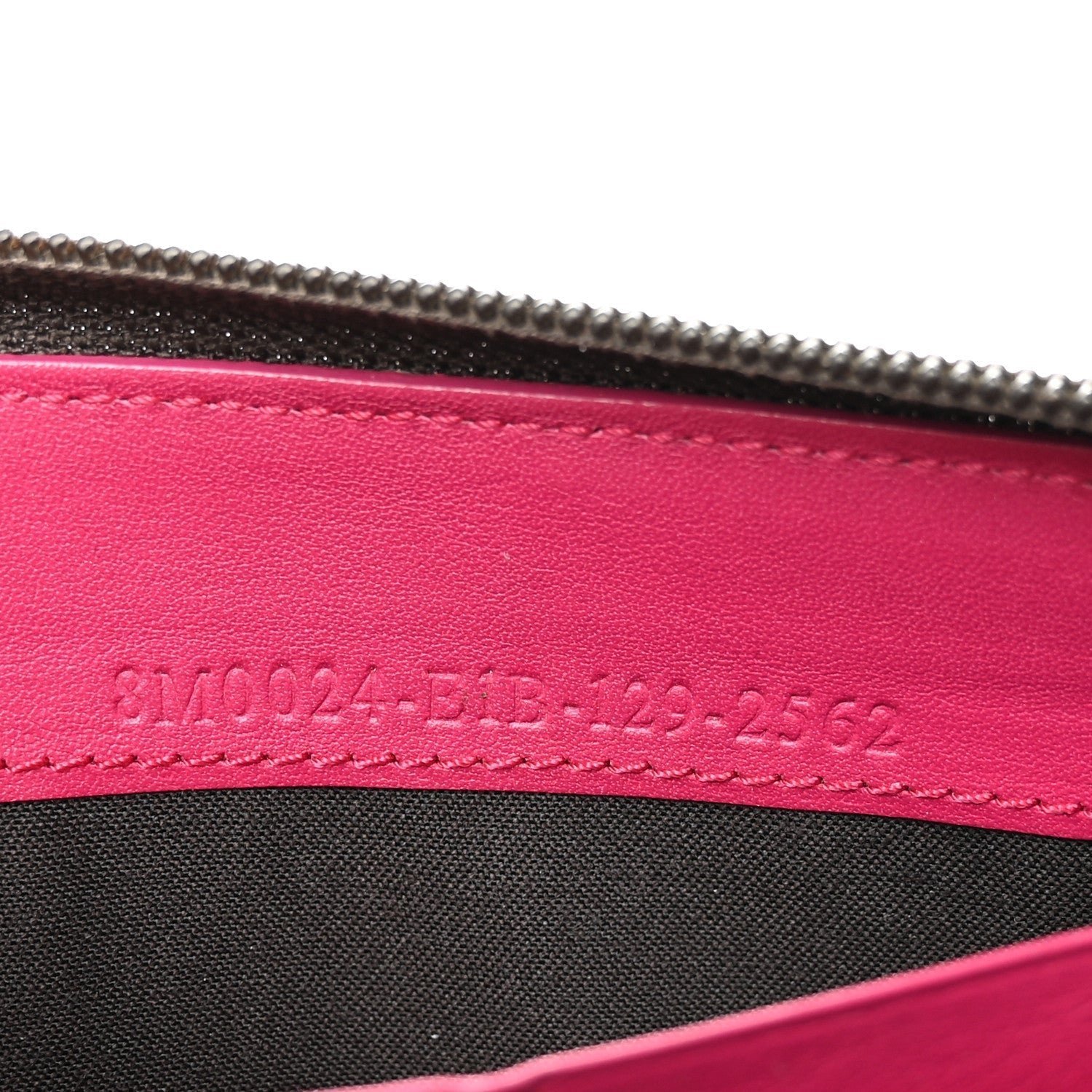 Hardware: Polished gold-tone metal zipper and hardware accents.